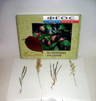 В гербарии представлены 28 видов наиболее распространенных культурных растений: зерновых, зернобобовых, масличных, технических, лекарственных, овощных, кормовых, плодово-ягодных, орехоплодных и декоративных. Список с наименованиями растений прилагается.