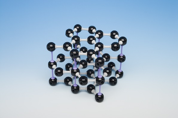 Набор моделей атомов для составления модели кристаллической решетки графита изготовлен в виде пластиковых шариков и гибких пластиковых связей